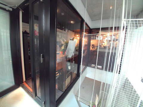 らせん階段を上り、2階のお店の入口です。