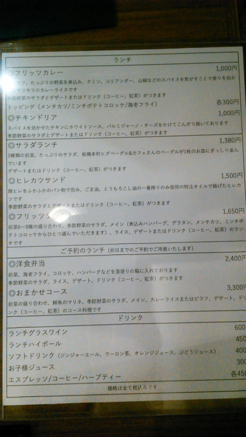 今回は、「フリッツランチ」(1680円)と「サラダランチ」(1380円