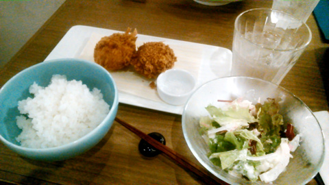 フリッツランチのメインのメンチカツとポテトコロッケです。ソースではなく、塩でいただきます。